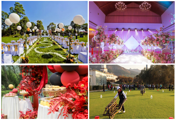 崮云湖畔開辟草地活動(dòng)中心,占地8000平米,自然景觀秀麗,獨(dú)有的高爾夫?qū)I(yè)場地草坪,是舉辦浪漫婚禮、生日宴、帳篷節(jié)、親子活動(dòng)、發(fā)布會(huì)、團(tuán)建活動(dòng)等各類戶外活動(dòng)的絕佳場地。場地承接專屬私人定制婚禮,提供婚紗攝影場地租賃,可滿足室內(nèi)外所有婚禮場景的幻想,專業(yè)的顧問團(tuán)隊(duì)為新人量身設(shè)計(jì),打造出高爾夫特色與自然融合一體的時(shí)尚婚禮現(xiàn)場,讓新人及親友暫時(shí)告別城市喧囂,享受自然賦予的陽光和美好。