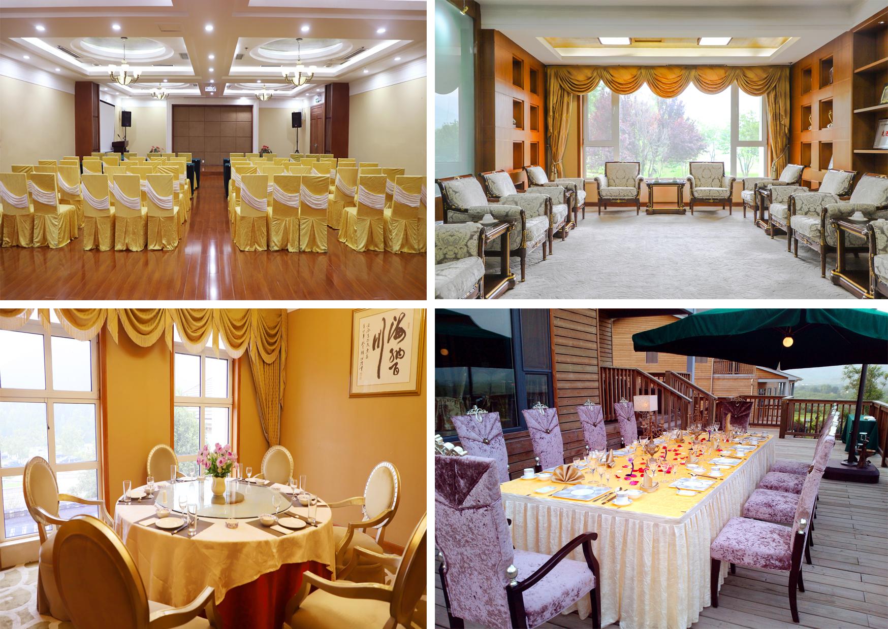 球場會(huì)所內(nèi)設(shè)宴會(huì)廳、自助餐廳、精品包間等,宴會(huì)廳可同時(shí)容納200人就餐,精品包間容客70位,多功能廳容客110余人,滿足年會(huì)、各類中小型會(huì)議及婚宴、滿月宴、生日宴、頒獎(jiǎng)禮等多種宴席需求,并提供品種豐富的定制純手工熟食禮盒。多功能會(huì)議廳設(shè)備齊全、環(huán)境優(yōu)良;餐廳環(huán)境優(yōu)美、毗鄰球場,設(shè)置觀景臺(tái)俯瞰湖光山色,是會(huì)議、宴請(qǐng)、度假的不二之選。