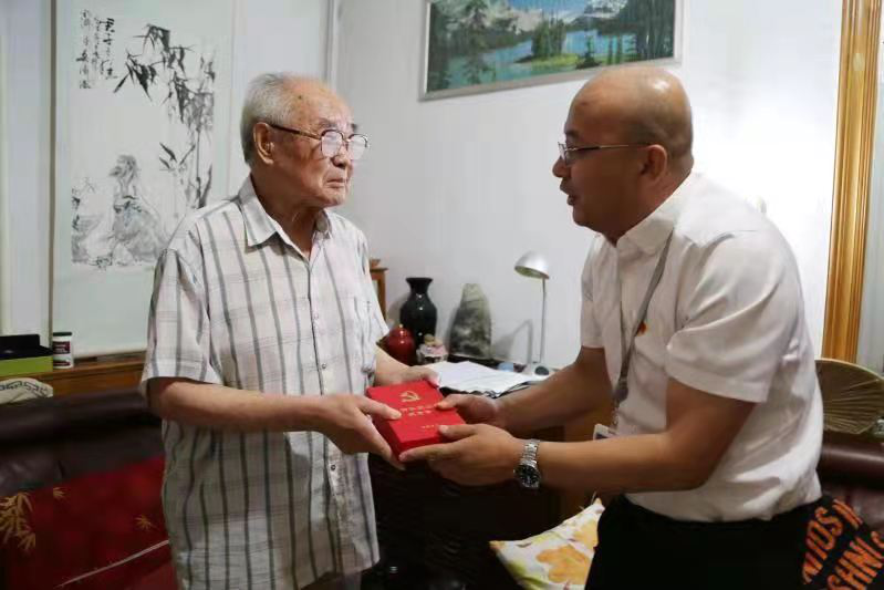 6月25日,山東省國欣文化旅游發(fā)展集團(tuán)有限公司(簡稱“國欣文旅”或“集團(tuán)”)黨委委員、副總經(jīng)理孫超率隊(duì)到集團(tuán)退休老黨員張?jiān)谙婕抑凶咴L慰問,并向其頒發(fā)“光榮在黨50年”紀(jì)念章,送去組織的親切關(guān)懷并致以崇高敬意。