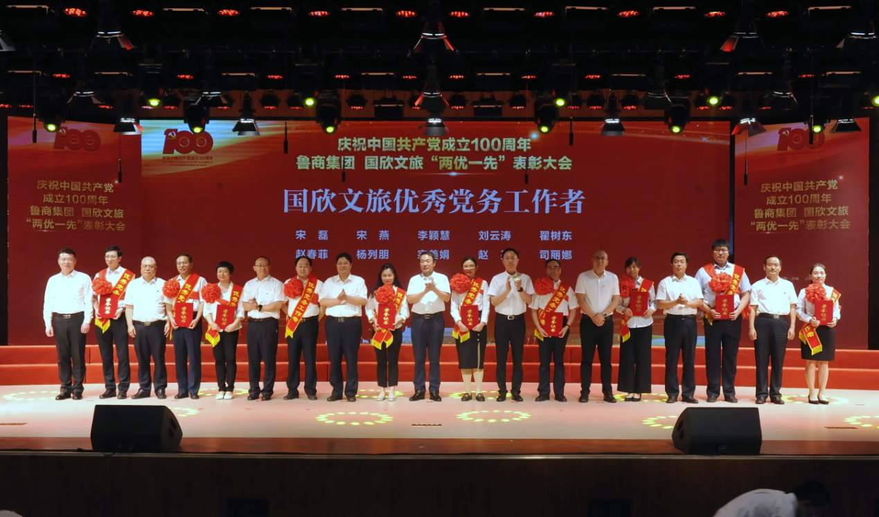 為慶祝中國共產(chǎn)黨成立100周年,6月23日,國欣文旅舉行 “兩優(yōu)一先”表彰大會暨“永遠(yuǎn)跟黨走”黨史學(xué)習(xí)教育合唱總決賽。魯商集團(tuán)黨委書記、董事長兼國欣文旅黨委書記、董事長高洪雷出席活動并講話。