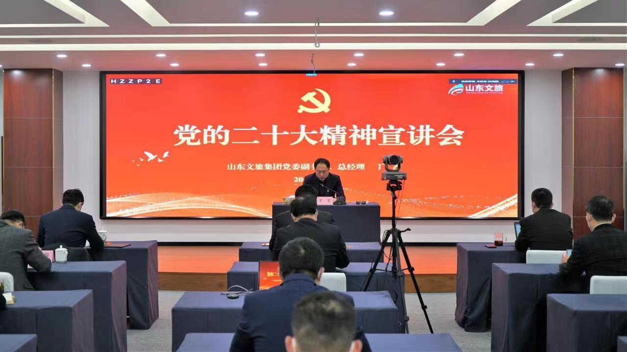 宣講會上,孫超緊密聯(lián)系山東文旅集團實際,緊扣黨的二十大報告原文,圍繞大會的主題和主要成果、過去5年的工作和新時代10年的偉大變革、馬克思主義中國化時代化、中國式現(xiàn)代化、全面建設(shè)社會主義現(xiàn)代化國家的目標任務(wù)、堅持黨的全面領(lǐng)導和全面從嚴治黨、應(yīng)對風險挑戰(zhàn)、開創(chuàng)新時代社會主義現(xiàn)代化強省建設(shè)新局面、譜寫中國式現(xiàn)代化的山東文旅篇章等9個方面,全面系統(tǒng)地解讀了黨的二十大精神。