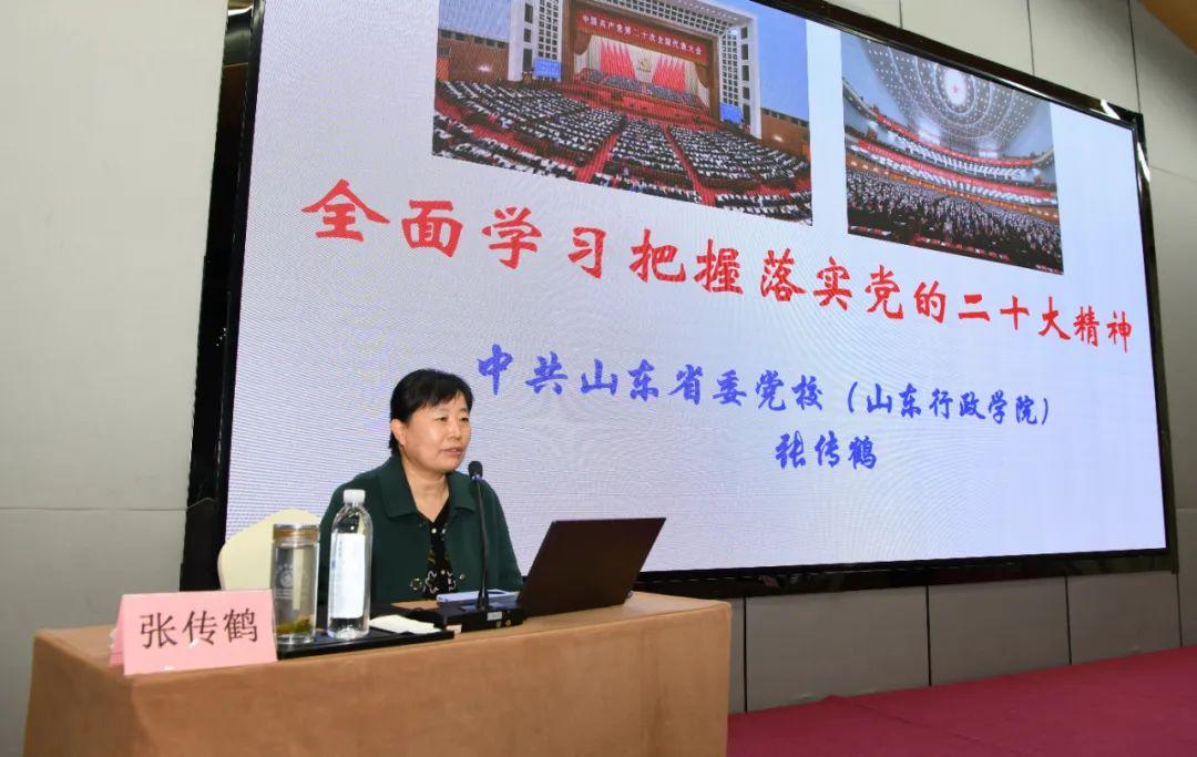 1月30日上午,舉行了黨的二十大精神專題學(xué)習(xí)會(huì)。會(huì)議邀請(qǐng)省委黨校教授張傳鶴作專題輔導(dǎo)報(bào)告。張傳鶴以“全面學(xué)習(xí)把握落實(shí)黨的二十大精神”為主線,從過去五年的工作和新時(shí)代十年的偉大變革、開辟馬克思主義中國化時(shí)代化新境界、新時(shí)代新征程中國共產(chǎn)黨的使命任務(wù)、加快構(gòu)建新發(fā)展格局、著力推動(dòng)高質(zhì)量發(fā)展等方面,對(duì)黨的二十大報(bào)告的框架結(jié)構(gòu)、基本內(nèi)容、內(nèi)涵精神以及重大意義等進(jìn)行了全面梳理和系統(tǒng)解讀。整場(chǎng)報(bào)告站位高、思考深,資料翔實(shí),論述深刻,對(duì)廣大干部職工全面理解和準(zhǔn)確把握黨的二十大精神具有重要指導(dǎo)意義。