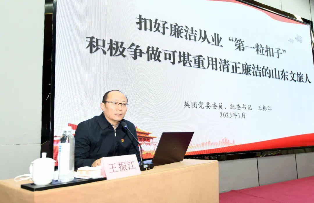當(dāng)天下午,舉行了廉政教育專題學(xué)習(xí)。會(huì)議邀請(qǐng)山東文旅集團(tuán)黨委委員、紀(jì)委書記王振江作《扣好廉潔從業(yè)“第一??圩印?積極爭(zhēng)做可堪重用清正廉潔的山東文旅人》專題授課。王振江從國有企業(yè)黨風(fēng)廉政建設(shè)和反腐敗工作基本情況、國有企業(yè)年輕干部違紀(jì)違法案件特征及成因、積極爭(zhēng)做可堪重用清正廉潔的山東文旅人三個(gè)方面出發(fā),以案釋法、以案說法、以案明紀(jì),教育年輕干部牢記“清廉是福、貪欲是禍”的道理,恪守職業(yè)操守,增強(qiáng)法紀(jì)意識(shí),堅(jiān)決做到知敬畏、存戒懼、守底線,爭(zhēng)做對(duì)黨忠誠、敬業(yè)奉獻(xiàn)、廉潔自律的模范。