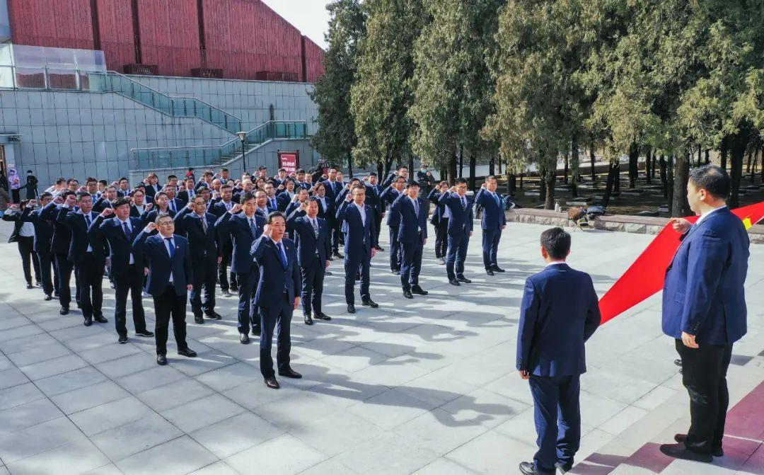 在革命烈士紀(jì)念碑前,全體人員肅穆地瞻仰碑體,懷著崇敬之情敬獻(xiàn)花籃,并面向黨旗重溫入黨誓詞,傳承紅色基因,緬懷革命先輩。