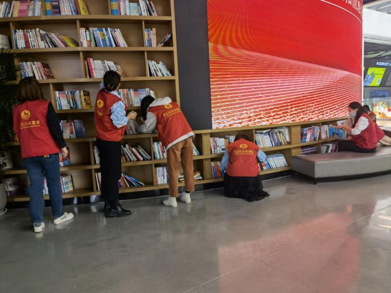 圖片正值“世界讀書日”,為增強(qiáng)主動(dòng)服務(wù)意識(shí),黨員干部們?cè)谧x書分享結(jié)束后自發(fā)開展了志愿服務(wù)活動(dòng),明確分工、相互配合,將新到圖書按規(guī)定流程分類上架,并將散亂書籍按類別和編號(hào)進(jìn)行排查整理放回對(duì)應(yīng)的位置,最后進(jìn)行了全方位打掃,為讀書愛好者們創(chuàng)造了干凈舒適的閱讀環(huán)境。