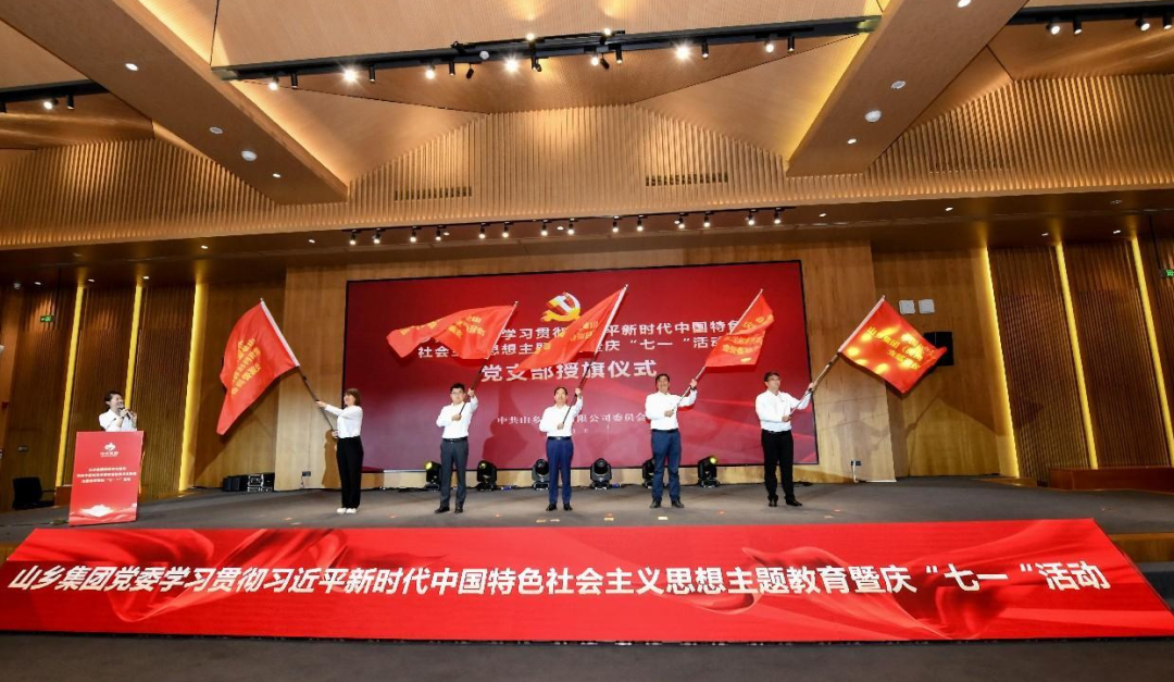會上,與會領(lǐng)導(dǎo)共同上臺發(fā)布山鄉(xiāng)集團(tuán)“山鄉(xiāng)情·映山紅”黨建品牌。