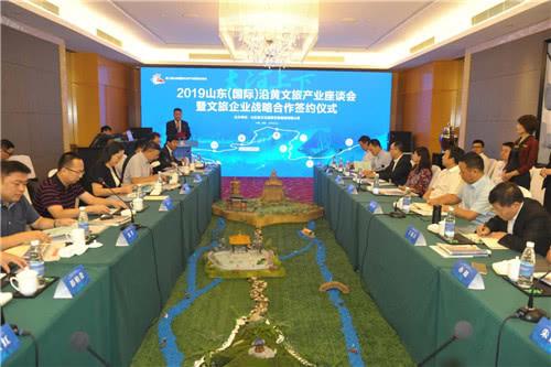 第八屆山東文博會(huì)9月19日至23日在山東國(guó)際會(huì)展中心舉辦,首次設(shè)立的沿黃特色文化產(chǎn)業(yè)展著重展示沿黃省區(qū)的文化體制改革和文化產(chǎn)業(yè)融合創(chuàng)新成果。為進(jìn)一步加強(qiáng)沿黃各省(區(qū))之間的交流與合作,共商沿黃文旅發(fā)展大計(jì),聚焦沿黃文旅產(chǎn)業(yè)的品牌傳播,以及在“一帶一路”背景下沿黃九省(區(qū))的交流協(xié)作,為在較高層次上引領(lǐng)、整合沿黃城市資源,打造覆蓋黃河流域、輻射全國(guó)的創(chuàng)新產(chǎn)品展示平臺(tái),山東省文旅集團(tuán)主辦了山東文博會(huì)系列活動(dòng)“大河上下·2019山東(國(guó)際)沿黃文旅產(chǎn)業(yè)座談會(huì)暨文旅企業(yè)戰(zhàn)略合作簽約儀式。