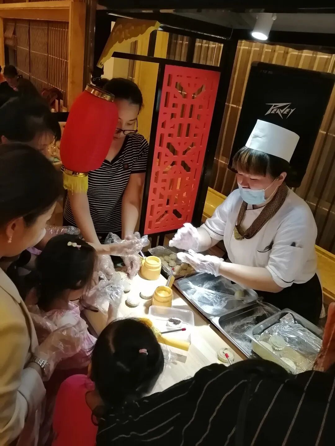 泉城大酒店餐飲部同事為增加客人就餐體驗(yàn),在上善坊的晚餐時(shí)段與客人一起DIY月餅,工作人員細(xì)心地將每組家庭進(jìn)行編號(hào),保證將烤制出來的月餅準(zhǔn)確送到每組家庭手中。此外,為弘揚(yáng)傳統(tǒng)文化,上善坊還組織多場民俗互動(dòng)活動(dòng),剪紙、糖畫、面塑等,增進(jìn)親子感情。