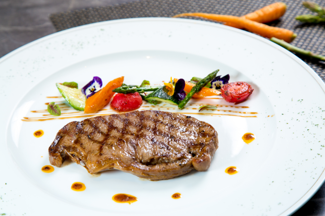 好牛排不需要腌漬,過多的調(diào)味品反而會(huì)遮掩牛排本身的香味。索菲特西餐大廚運(yùn)用天然海鹽及現(xiàn)磨黑胡椒,足以為您烹制一塊贊不絕口的香嫩牛排。大火炙烤,高溫瞬間將牛排里的水份鎖住,一口咬下去,肉嫩多汁。時(shí)令蔬菜經(jīng)過意大利特純橄欖油的的迅速翻炒,最大程度保留營(yíng)養(yǎng)。