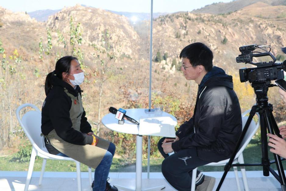 新華社記者在九女峰書(shū)房采訪東西門村就地就業(yè)的村民楊慶花