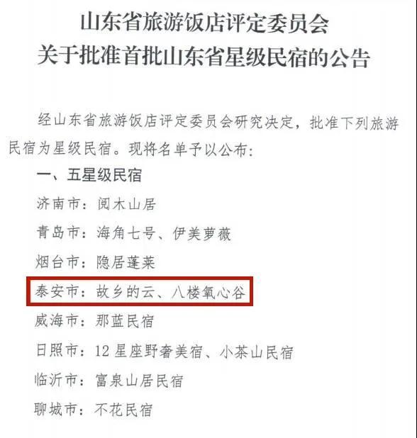 3月22日,山東省旅游飯店委員會發(fā)布關于批準首批山東省星級民宿的公告。鄉(xiāng)發(fā)展集團泰山·九女峰鄉(xiāng)村振興項目故鄉(xiāng)的云、八樓氧心谷被評為我省首批五星級民宿。