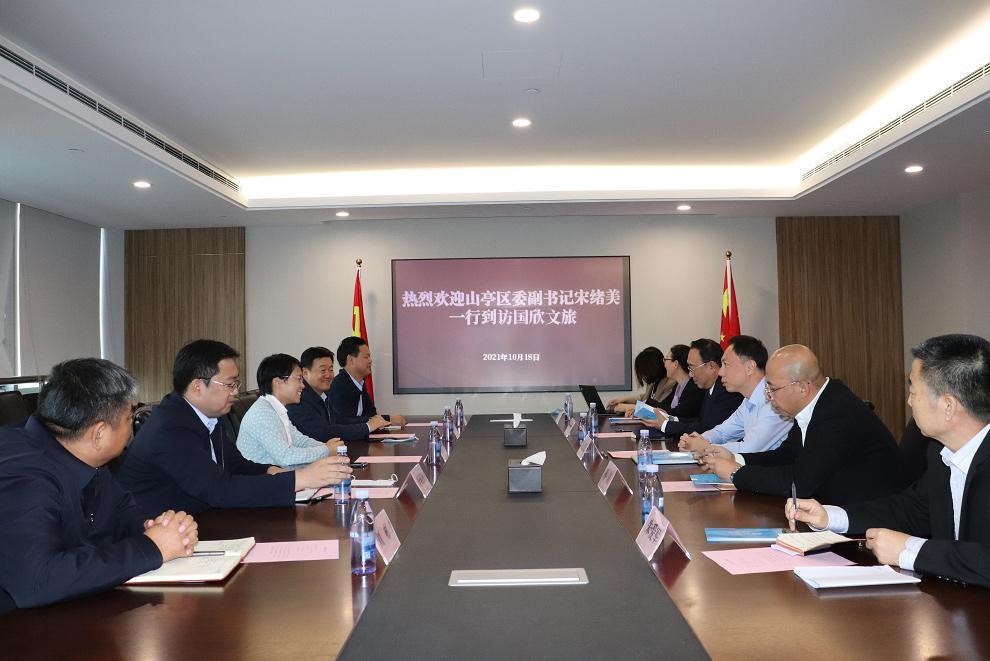 10月18日,山東省國(guó)欣文化旅游發(fā)展集團(tuán)有限公司(簡(jiǎn)稱“國(guó)欣文旅”或“集團(tuán)”)黨委副書(shū)記、總經(jīng)理丁藝與到訪的棗莊市山亭區(qū)委副書(shū)記宋緒美一行進(jìn)行座談。集團(tuán)黨委委員、副總經(jīng)理孫超,山亭區(qū)委常委、宣傳部部長(zhǎng)齊健,山亭區(qū)副區(qū)長(zhǎng)李明智參加。
