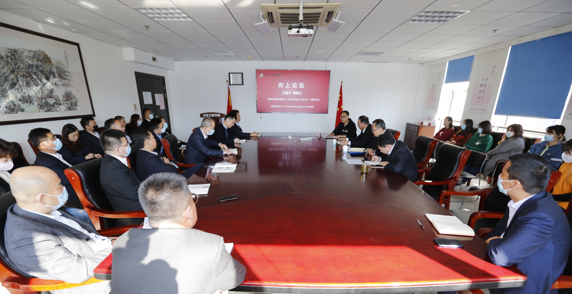 11月8日是第22個(gè)記者節(jié)。當(dāng)天,山東文旅傳媒集團(tuán)舉辦第十期向上論壇暨記者節(jié)慶?;顒?dòng),邀請(qǐng)山東世博動(dòng)漫集團(tuán)董事長(zhǎng)王振華給編輯記者們舉行講座,用火熱的學(xué)習(xí)慶祝節(jié)日、為團(tuán)隊(duì)賦能,讓記者節(jié)活動(dòng)有新意也更有意義。山東文旅傳媒集團(tuán)黨委書記、董事長(zhǎng)龐道鋒主持會(huì)議并講話。