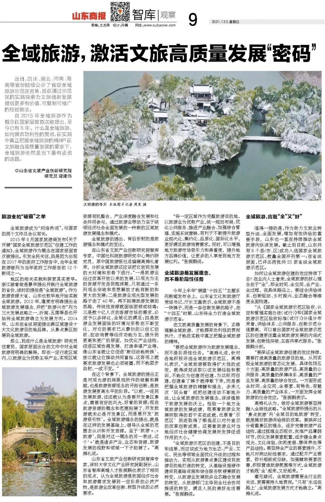 山東省文旅產(chǎn)業(yè)創(chuàng)新研究院在山東商報開設智庫版