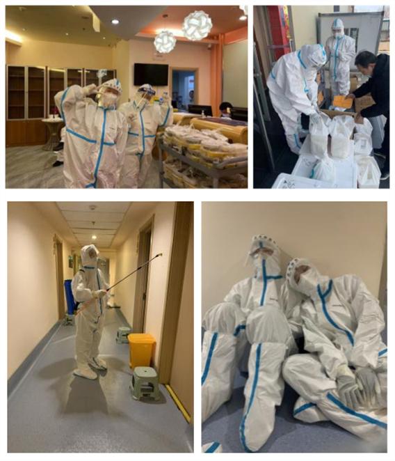 山東文旅酒店集團(tuán)現(xiàn)有92家門店被征用為集中隔離酒店,在征用期間,門店工作人員主動(dòng)報(bào)名疫情防控志愿者,奮戰(zhàn)在抗疫一線,為酒店隔離人員配餐、送餐、消毒、記錄。每天早上6點(diǎn),他們穿上防護(hù)服開始一天的工作,直到晚上才能休息。面對(duì)高強(qiáng)度工作,他們的衣服都是濕透的,手也是顫抖著的,從來沒有一句抱怨。這些志愿者中有不少都是鏗鏘玫瑰,用自己?jiǎn)伪〉纳碥|撐起了隔離點(diǎn)的一片天。他們說的最多的話是:“能做一名抗疫志愿者,我們覺得很光榮,這是一件讓人生變得更有意義的事”。