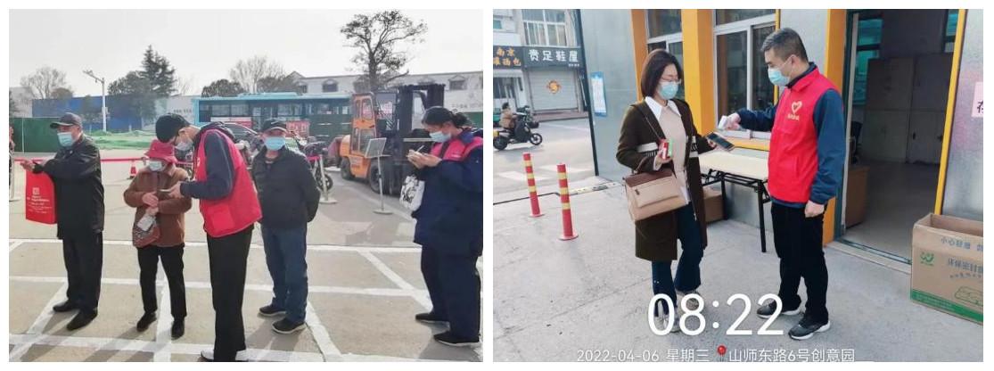 在抗擊本輪疫情期間,鄉(xiāng)發(fā)展集團(tuán)積極發(fā)揮“黨員志愿服務(wù)隊(duì)”“青年突擊隊(duì)”作用,組織職工在濟(jì)南、泰安等地協(xié)助街道社區(qū)開展疫情防控,并走訪慰問社區(qū)工作人員,踐行初心使命、彰顯黨員風(fēng)采。面對(duì)核酸檢測(cè)時(shí)間緊、任務(wù)重、壓力大的情況,鄉(xiāng)發(fā)展集團(tuán)所屬魯商(山東)教育科技有限公司在高效完成公司全員核酸檢測(cè)采樣后,第一時(shí)間組織“星火公益”志愿者攜手泰安主題黨日活動(dòng)中心“泰山先鋒”志愿服務(wù)項(xiàng)目,開展核酸檢測(cè)志愿服務(wù)活動(dòng),與社區(qū)醫(yī)護(hù)人員一起參與出入口值守、核酸檢測(cè)登記、維持檢測(cè)秩序等工作,為當(dāng)?shù)匾咔榉揽靥峁┝讼鄳?yīng)助力。