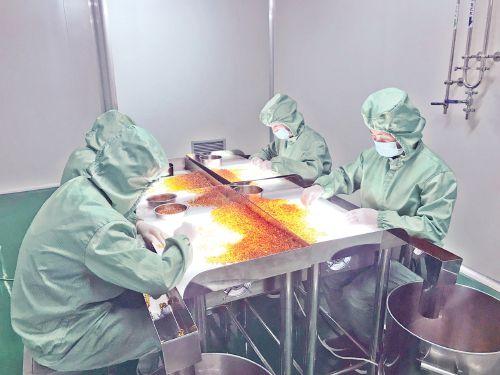 圖為百瑞源杞股份有限公司加工研發(fā)車間的員工正在進行枸杞產(chǎn)品深加工作業(yè)。