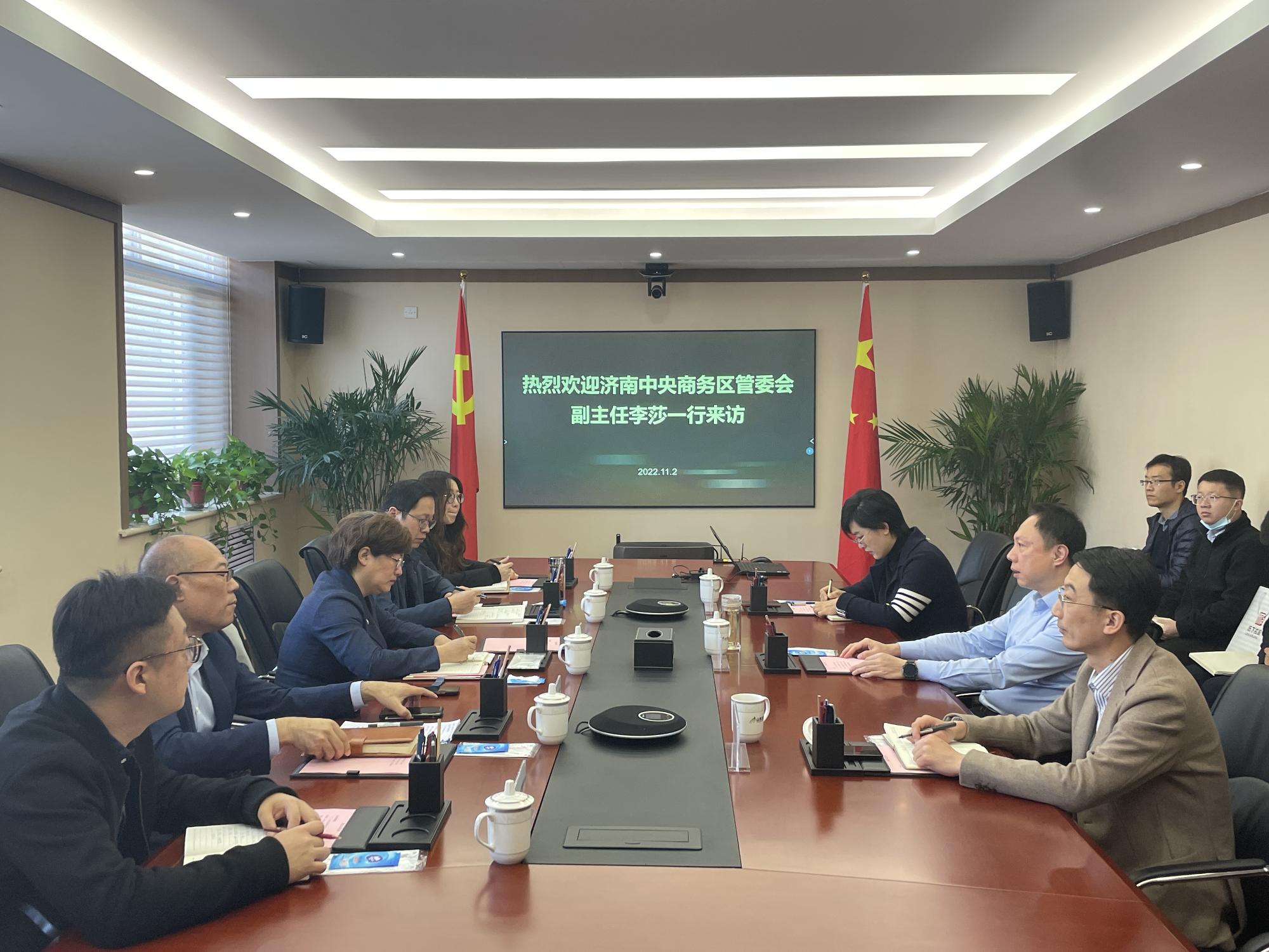 11月2日,濟(jì)南中央商務(wù)區(qū)管委會副主任李莎一行到訪山東文旅集團(tuán),集團(tuán)黨委副書記、總經(jīng)理丁藝會見并參加座談。
