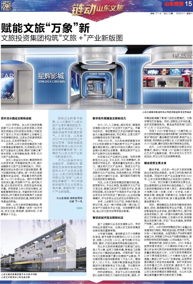 作為山東省市場化運(yùn)營較早、規(guī)模較大、管理規(guī)范并具有影響力的國有文化產(chǎn)業(yè)投資運(yùn)營企業(yè),山東文旅投資集團(tuán)有限公司(簡稱“山東文旅投資集團(tuán)”)早已將創(chuàng)新突破列為企業(yè)發(fā)展頭等大事,謀篇布局“文旅+”產(chǎn)業(yè)新版圖。