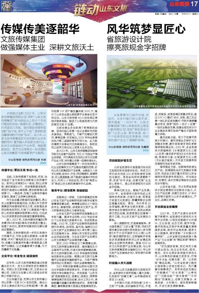 對剛剛過去的2022年,山東文旅傳媒集團有限公司(簡稱“山東文旅傳媒集團”)在內(nèi)部會議上用8個字進行概括和總結:“數(shù)據(jù)扎實,步履堅實。”時間退回幾年前,彼時提起傳媒轉型說的“始于紙,但不止于紙”,更多的是沿著媒體的方向做“加法”。近幾年,山東文旅傳媒集團在守住傳媒行業(yè)大本營的同時,著力融入所在的文旅行業(yè),在大文化領域進行產(chǎn)業(yè)布局,釋放乘數(shù)效應,努力與兄弟單位一起支撐起山東文旅集團“文旅并重”的產(chǎn)業(yè)格局。