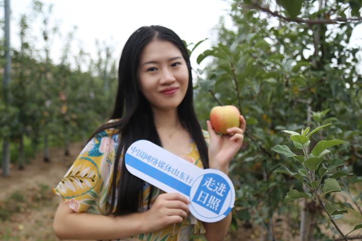 美女記者走進山東豐沃集團九五農(nóng)業(yè)現(xiàn)代林果示范園內(nèi)采摘水果