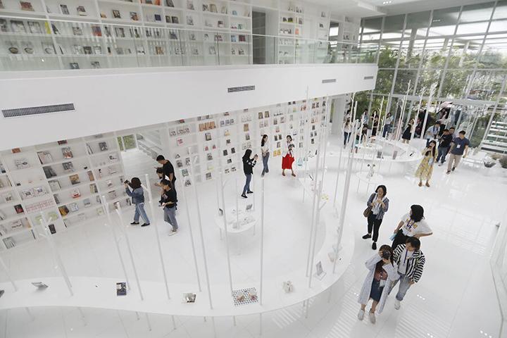 采訪團記者走進白鷺灣藝游小鎮(zhèn),在藍天白云映襯下,百畝青碧的荷塘迎風(fēng)輕曳,星星點點的荷花散發(fā)的清香更是讓人心曠神怡。沿著一條鵝卵石鋪成的小路往里走,迎面而來的是字里窗間書店。作為白鷺灣藝游小鎮(zhèn)一期工程的重點項目之一,在這里低頭,是文學(xué)的優(yōu)美,而抬頭,是窗間心曠神怡的自然美景。捧一本經(jīng)典,棲身角落,品味字里窗間的不同景色。