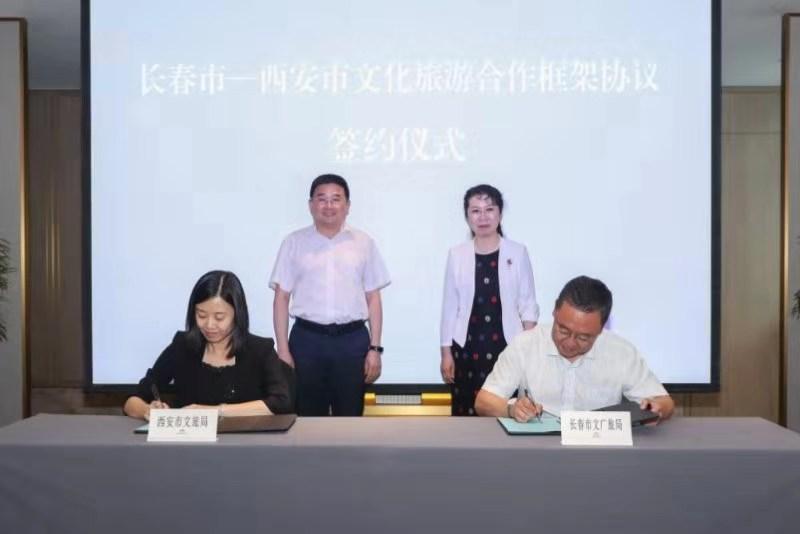 7月22日下午,賈麗娜與西安市副市長徐明非共同出席了《長春市—西安市文化旅游合作框架協(xié)議》簽約會。曲江新區(qū)、西安市文化和旅游局、長春市文化廣播電視和旅游局負(fù)責(zé)同志分別介紹了兩地文旅資源和產(chǎn)業(yè)發(fā)展情況,圍繞兩地文化旅游合作發(fā)展進(jìn)行了熱烈地交流和討論。長春市文化廣播電視和旅游局、西安市文化和旅游局共同簽署《長春市——西安市文化旅游合作框架協(xié)議》,就兩市文化旅游部門交流互訪、互相派員參加活動、藝術(shù)精品劇目交流演出、公共文化服務(wù)體系交流互通、文旅產(chǎn)業(yè)交流合作、文博信息資源共享、旅游企業(yè)合作往來、人才培養(yǎng)合作交流、共同協(xié)調(diào)處理應(yīng)急事件等九個方面達(dá)成合作共識。