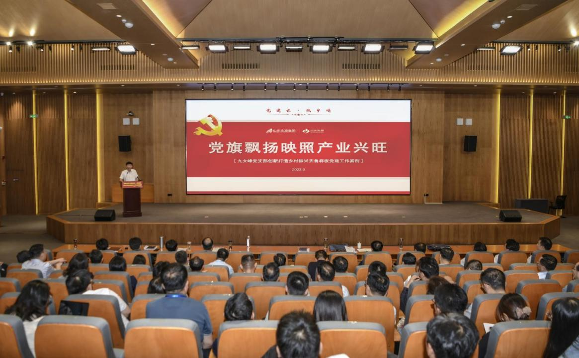 在當天下午舉行的黨建工作案例交流環(huán)節(jié),山鄉(xiāng)集團九女峰黨支部以《黨旗飄揚映照產(chǎn)業(yè)興旺——九女峰黨支部創(chuàng)新打造鄉(xiāng)村振興齊魯樣板黨建工作案例》為題進行了交流發(fā)言。