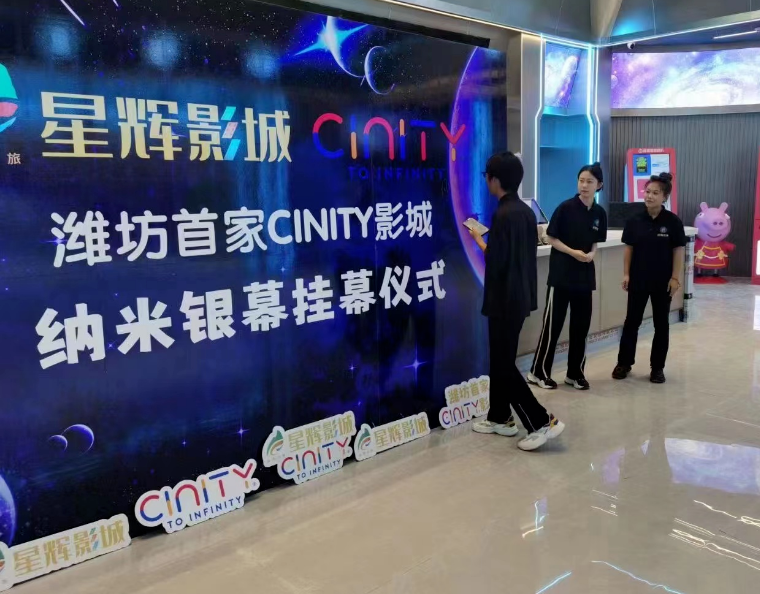 近日,山東文旅星輝影城濰坊吾悅廣場CINITY影廳舉行掛幕儀式,伴隨著長18米、高8米的大幕正式落成,濰坊市迎來首家CINITY影城。本次掛幕的是影城5號CINITY影廳,也是濰坊市首個CINITY特效廳,該廳可容納317人同時觀影。