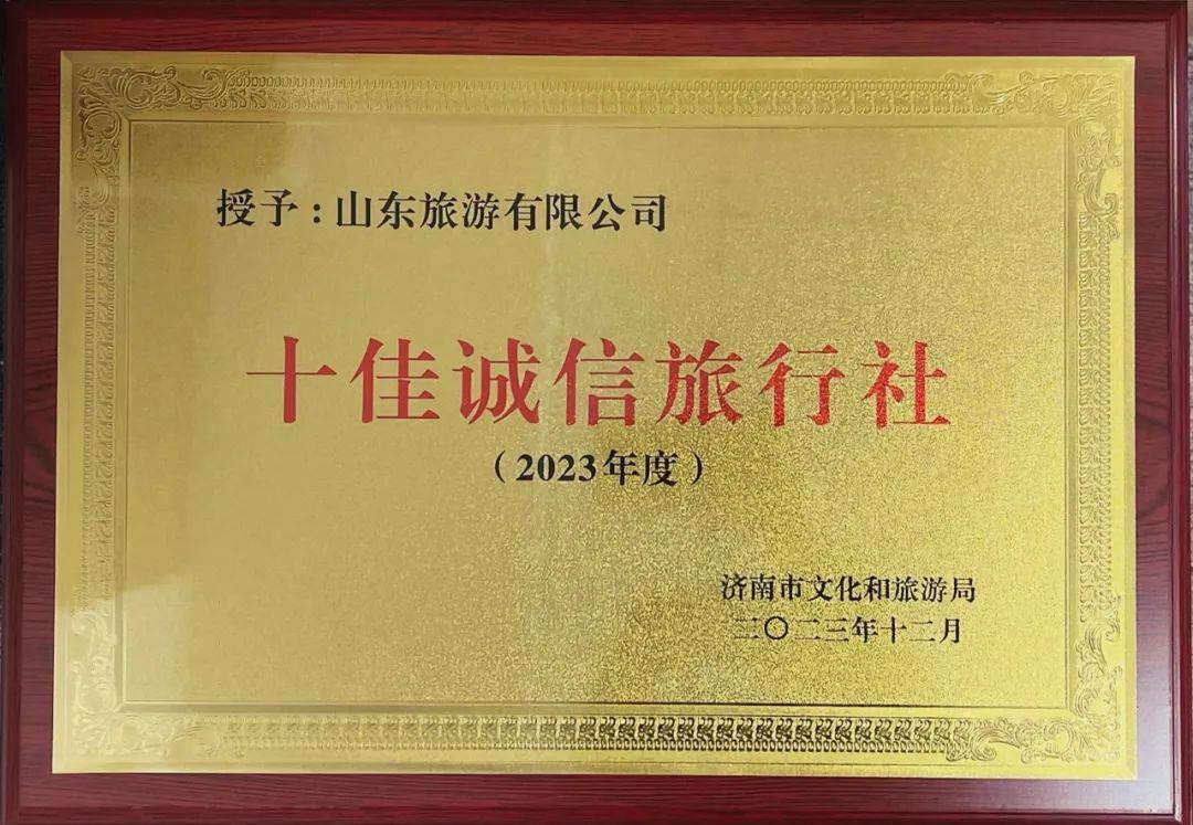 日前,濟(jì)南市文化和旅游局公布2023年濟(jì)南市誠(chéng)信旅行社評(píng)選結(jié)果,山東旅游有限公司榮獲2023年度濟(jì)南市“十佳誠(chéng)信旅行社”榮譽(yù)稱號(hào)。