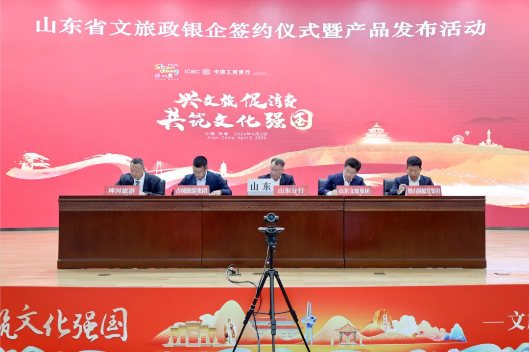 為全力貫徹“建設(shè)文化強國”的重要戰(zhàn)略,落實“豐富文旅消費”的重要要求,圍繞“興文旅、促消費,共筑文化強國”主題,4月2日,中國工商銀行總行與文化和旅游部文旅政銀企簽約活動在北京舉行,山東省文化和旅游廳、工商銀行山東省分行“政銀企戰(zhàn)略合作簽約儀式暨產(chǎn)品發(fā)布系列活動”同步在濟南舉行。山東省文化和旅游廳黨組書記、廳長王磊,工商銀行山東省分行黨委書記、行長李峰等領(lǐng)導(dǎo)嘉賓出席儀式。山東文旅集團黨委副書記、董事、總經(jīng)理門家春參加會議。