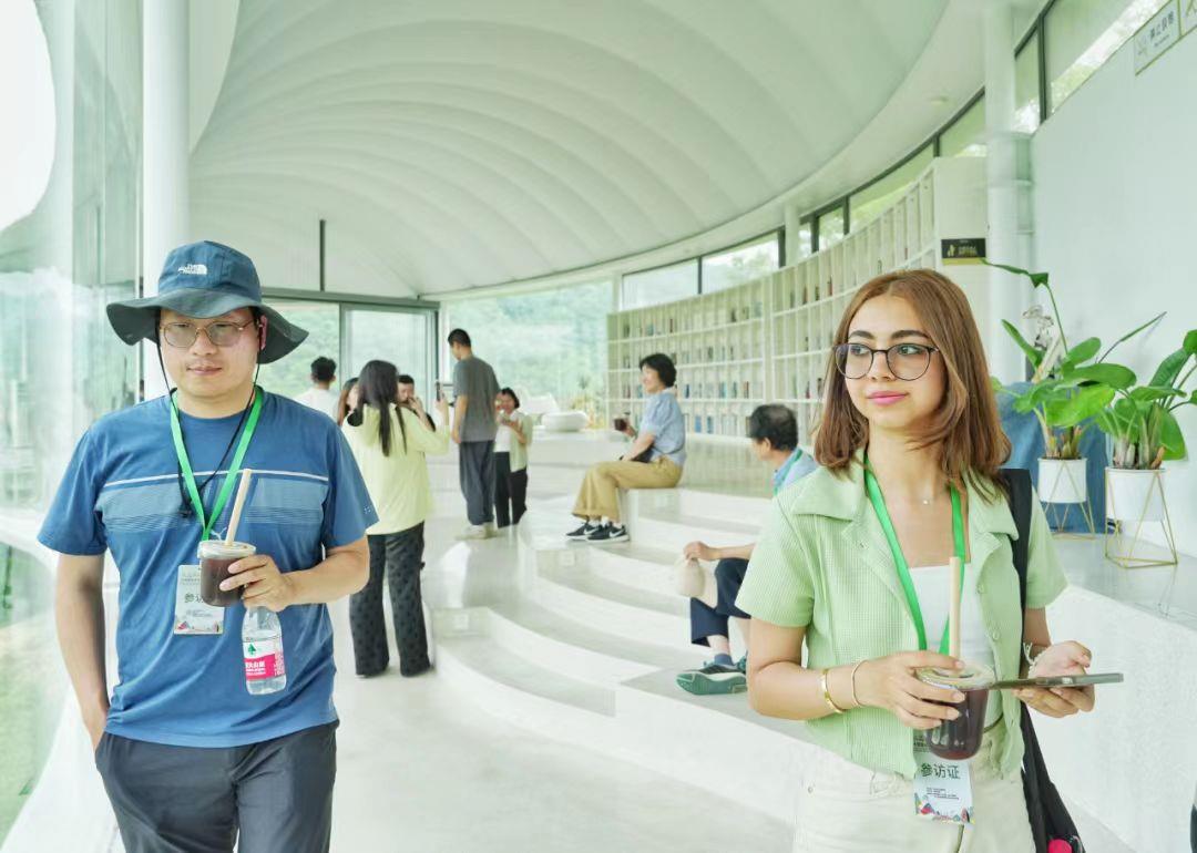 采訪團一行先后參觀了春天里度假酒店、八樓野有院民宿、山鄉(xiāng)牧野營地、九女峰沉浸式景區(qū)等項目業(yè)態(tài),實地感受文旅融合發(fā)展助力鄉(xiāng)村振興帶來的“山鄉(xiāng)巨變”。山鄉(xiāng)牧野2號營地周圍風景秀麗,植被豐盛,采訪團一行走進帳篷、天幕以及露營房車,察看露營設(shè)施,在青翠的樹林間體驗露營樂趣。在九女峰沉浸式景區(qū),采訪團一行先后參觀了九女峰書房、“楓月無邊”“流瑩星徑”“大峽谷”等休閑體驗區(qū)以及故鄉(xiāng)的月沉浸式演出,濃厚的文化氛圍、精心的布景設(shè)計、用心的運營服務(wù),得到采訪團高度認可。特別是融合了多場景流動、多角色扮演、多感官體驗、多技術(shù)應(yīng)用的故鄉(xiāng)的月沉浸式演出,吸引了外媒記者的目光,大家沉醉其中、流連忘返。