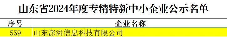 近日,山東省工業(yè)和信息化廳發(fā)布了《山東省2024年度專精特新中小企業(yè)名單公示》,山東文旅集團(tuán)科技發(fā)展有限公司權(quán)屬單位山東澎湃信息科技有限公司(簡(jiǎn)稱“澎湃科技”)成功入選山東省2024年度專精特新中小企業(yè),這是澎湃科技繼通過高新技術(shù)企業(yè)認(rèn)定之后又一殊榮。