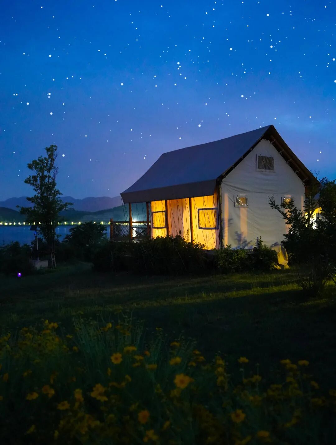 夜晚在滿天繁星里枕著月色睡去