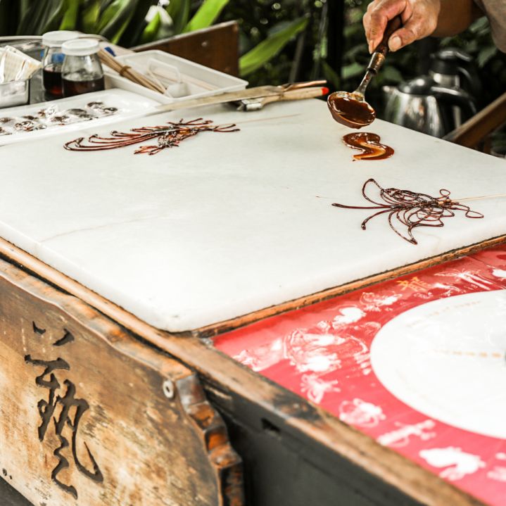 除了體驗傳統(tǒng)文化,賓客還可以在美食區(qū)品嘗到很多與非遺相關(guān)的地道美食,例如盤絲餅。盤絲餅制作工藝繁瑣復(fù)雜,對廚師的體力和手藝要求比較高,時間成本也很可觀。因此會做的人越來越少?!胺沁z傳承人”孫在嬌做了十多年的盤絲餅,目的就是要留住這門手藝,讓老濟(jì)南人熟悉的味道不會失傳。