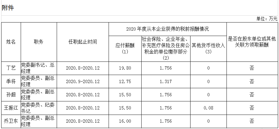 山東文旅集團(tuán)負(fù)責(zé)人2020年度薪酬信息披露表
