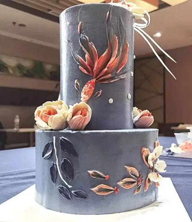 濟南銀座佳悅酒店廚師長李洪星在中西式面點類目中憑借作品“紫陌香塵”一舉奪魁。參賽作品靈感來源于盛開的花朵,用雙層無縫抹面技術(shù),利用刮刀畫的技巧將金魚、蝴蝶蘭、玫瑰、水仙刻畫在蛋糕上,使蛋糕更加形象、逼真,帶來極致的視覺意境,遠看美的像藝術(shù)品,近看卻能聞到奶油的香氣。