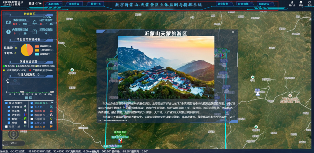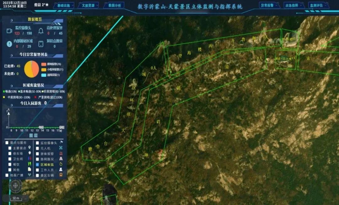2023年10月20日,國家重點研發(fā)計劃“復(fù)雜山岳景區(qū)游客全域位置感知與精準(zhǔn)服務(wù)”應(yīng)用運行啟動儀式在天蒙景區(qū)舉辦。經(jīng)過兩個多月的應(yīng)用實踐,北斗項目研究成果“數(shù)字沂蒙山-天蒙景區(qū)立體監(jiān)測與指揮系統(tǒng)”及“天蒙導(dǎo)覽微信小程序”取得了顯著的成果。