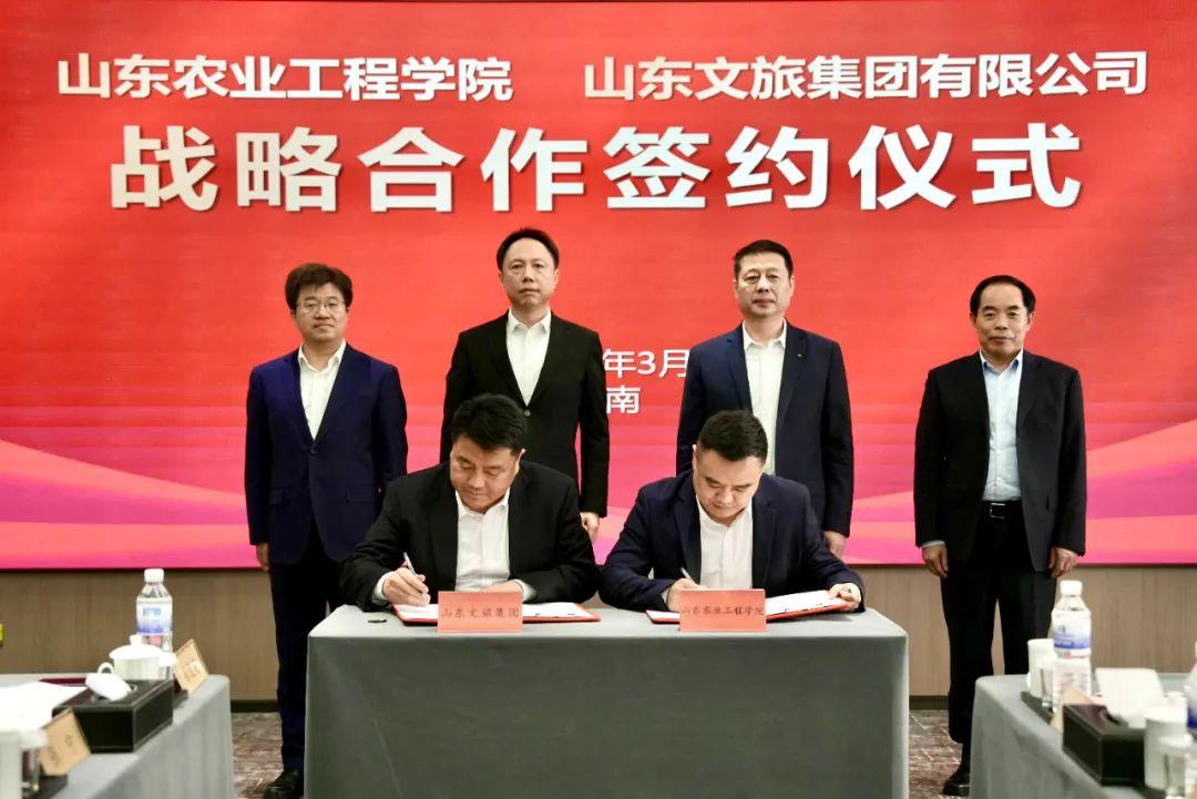 儀式上,山東文旅集團黨委委員、副總經(jīng)理,山東文旅集團科技發(fā)展有限公司董事長于偉與山東農(nóng)業(yè)工程學(xué)院黨委委員、副校長周吉鵬代表雙方簽署戰(zhàn)略合作協(xié)議。協(xié)議約定雙方在共建省級農(nóng)文旅融合現(xiàn)代產(chǎn)業(yè)學(xué)院、共同發(fā)起產(chǎn)教融合共同體、共建數(shù)字校園實驗室、建立校企人才共育基地、建立校企課題合作機制、共建綠色節(jié)約型校園等六個方面開展合作。下一步,雙方將組建工作專班,建立深入的合作機制,圍繞人才培養(yǎng)、技術(shù)研發(fā)等方面,聚焦農(nóng)業(yè)科技創(chuàng)新與文化旅游產(chǎn)業(yè)的深度融合,推動合作取得豐碩成果。