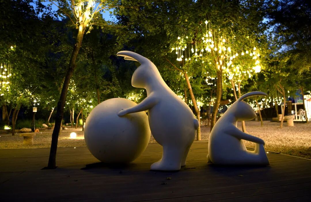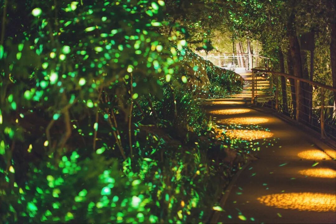 沿著蜿蜒的小道,燈光在樹叢中閃爍,讓人仿佛置身于童話世界。