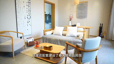 這里還配套建設(shè)了春天里精品民宿、春天里度假酒店。其中,精品民宿兼容中西的庭院設(shè)計(jì),猶如擁抱山間美色、靜謐安眠。