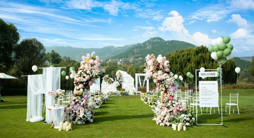 在草坪上舉行一場婚禮或聚會,清楚地看見屬于你的另一半。